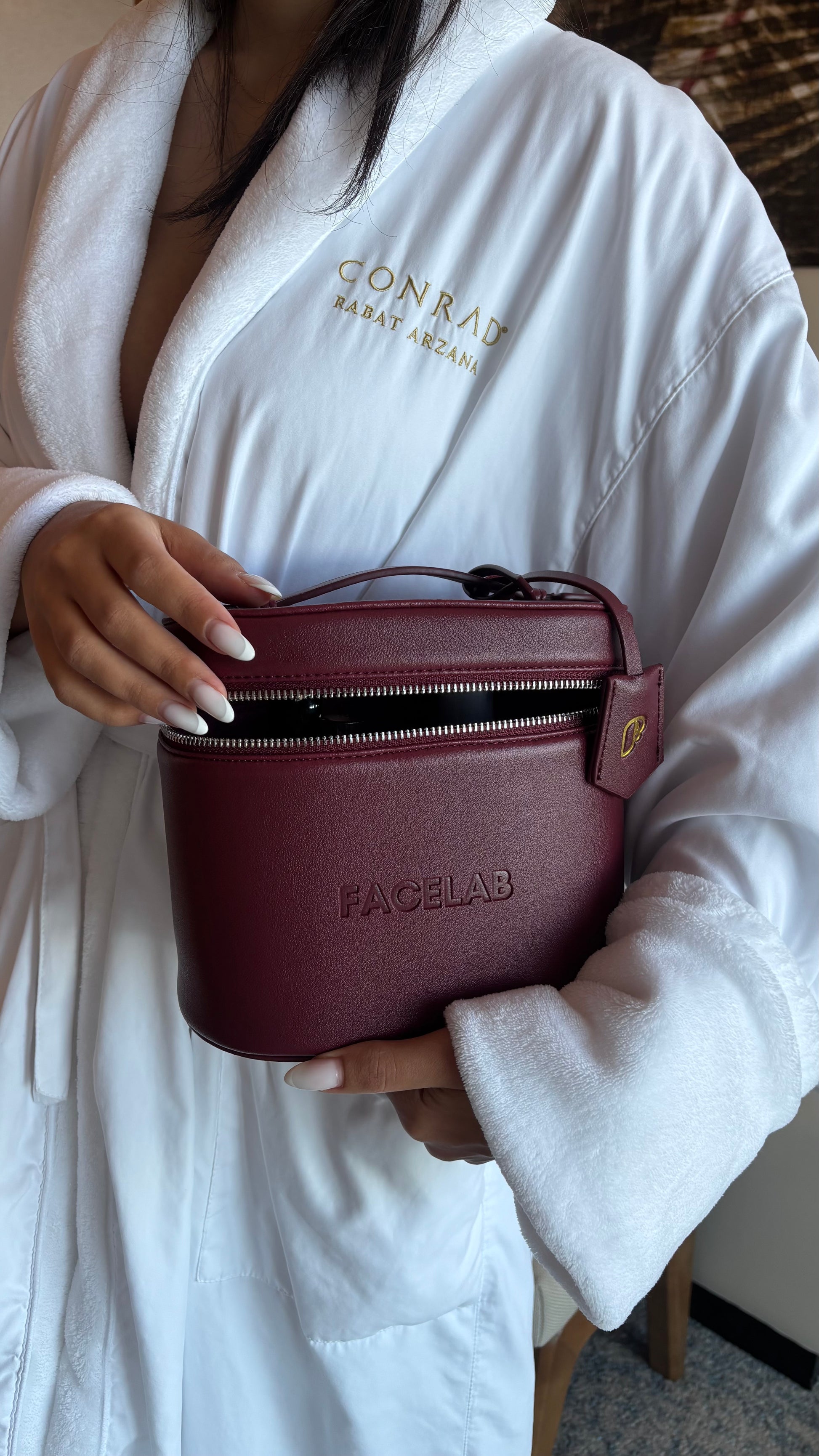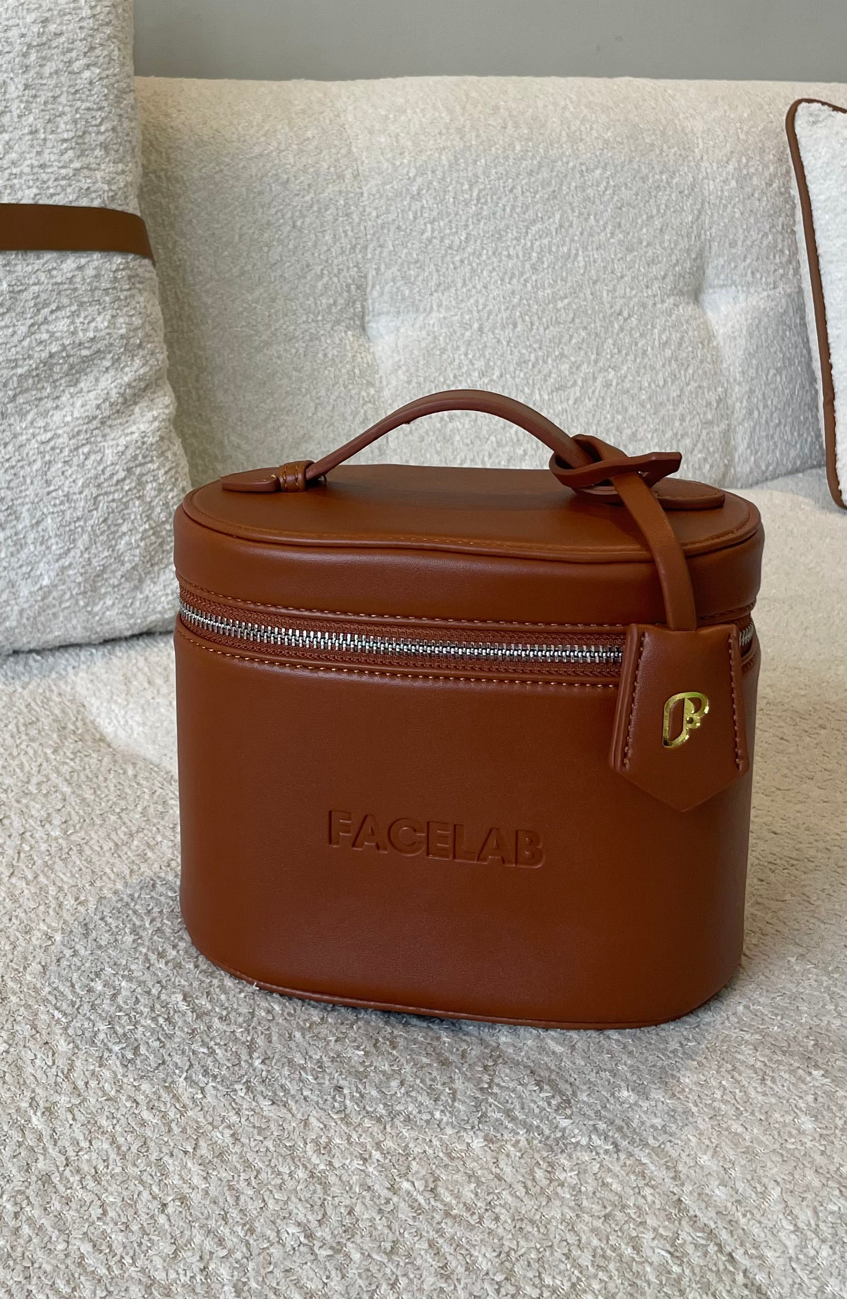 - Une vanity rigide et élégante en cuir vegan, conçue pour organiser et protéger vos essentiels beauté.