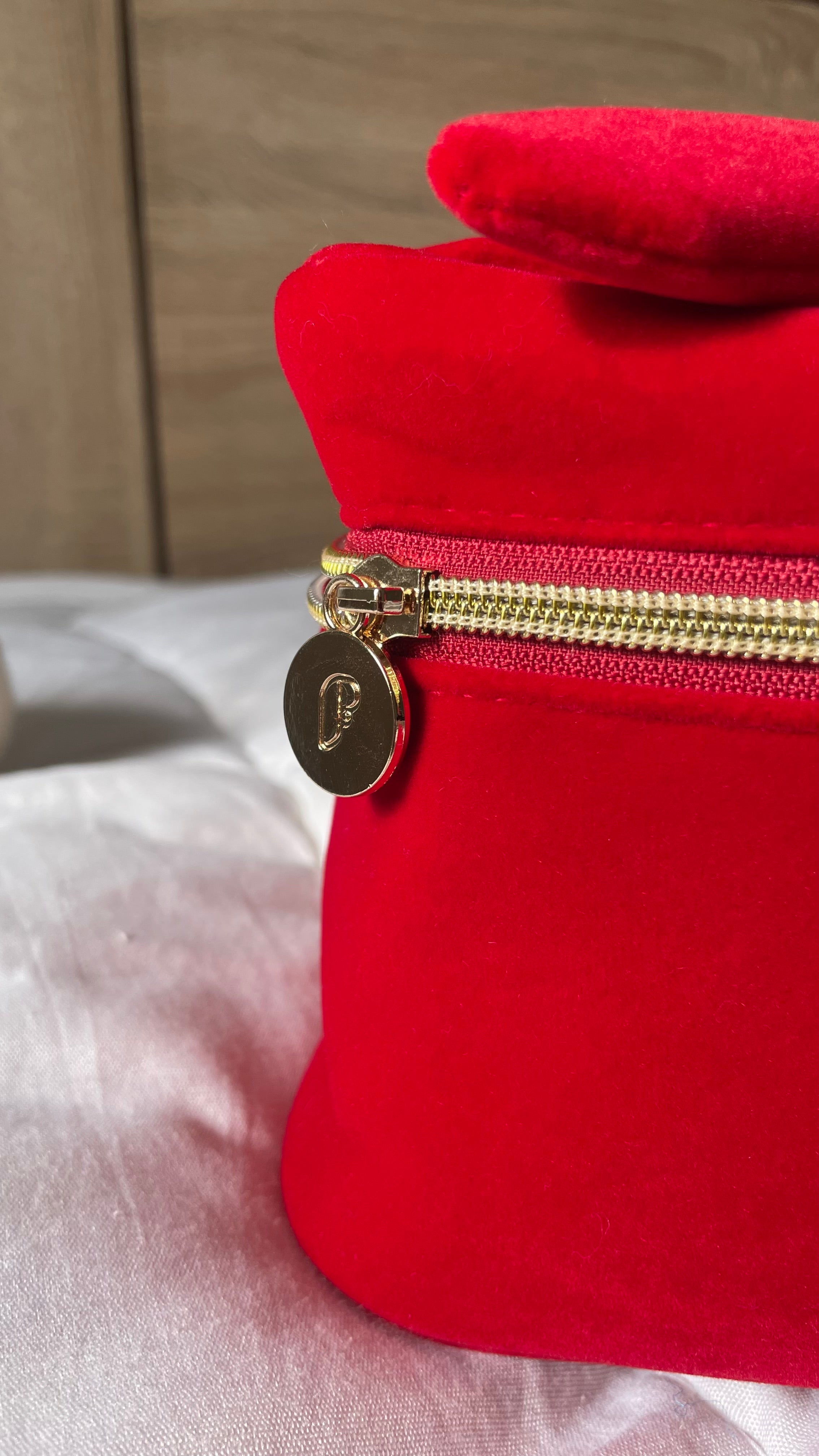 Découvrez l'élégance ultime avec notre trousse vanity en velours rouge. Conçue avec une attention aux détails, elle allie style et fonctionnalité.